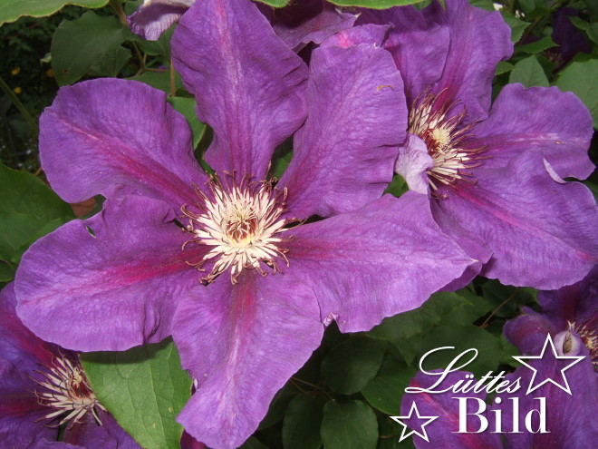 Zuerst möchte ich Euch eine Auswahl meiner Clematis (Clematisse???) zeigen, deren einzelne Namen ich im Moment nicht parat habe. Ich könnte die Namen nachlesen, aber ich finde, man kann die tollen Blüten auch einfach mal so auf sich wirken lassen, ohne deren Vor- und Nachnamen zu kennen. 🙂